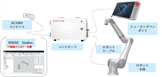 コントローラからロボット本体のケーブル長は6mです。